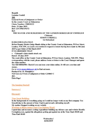 I spent time and recourses costing expenditure building my defence case and website Horrific