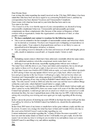 correspondence has been deemed Vexatious and Unreasonable Complaints.