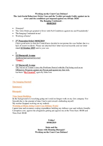 Working on the Court Case Defence!