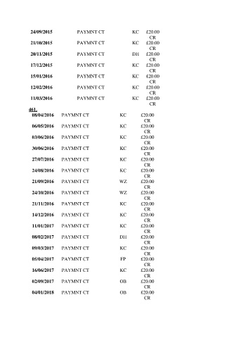 24/09/2015 PAYMNT CT KC £20.00