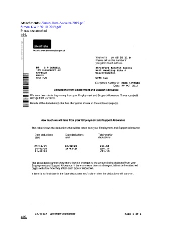 Attachments: Simon-Rent-Account-2019.pdf Simon-DWP-30-10-2019.pdf Please see attached 464, 465,