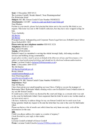 Further to your emails, please find attached the letter sent to the court by Ms Johal as you